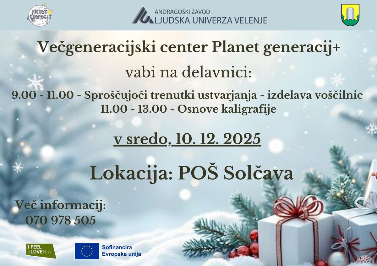 Večgeneracijski center Planet generacij+ vabi na delavnici, ki bosta potekali v sredo, 10. 12. 2025 na POŠ Solčava.